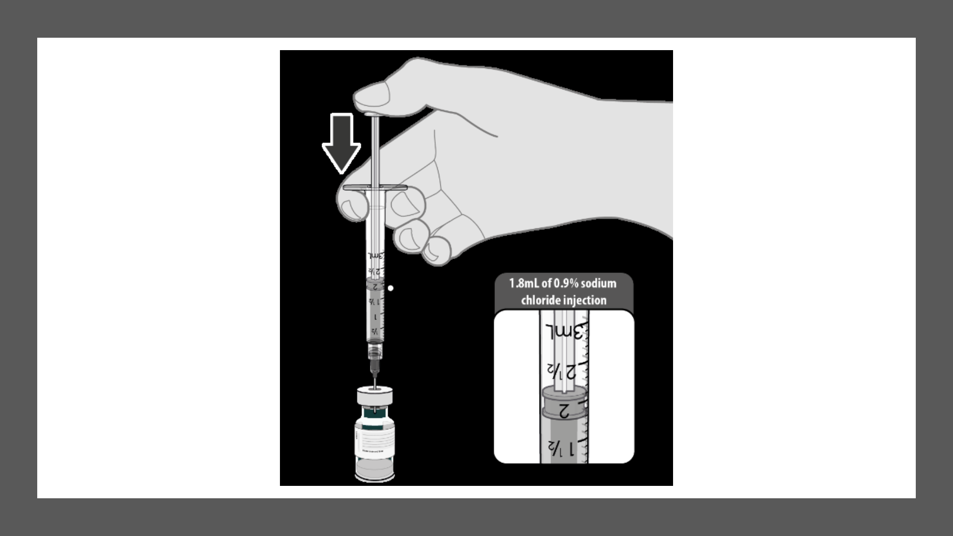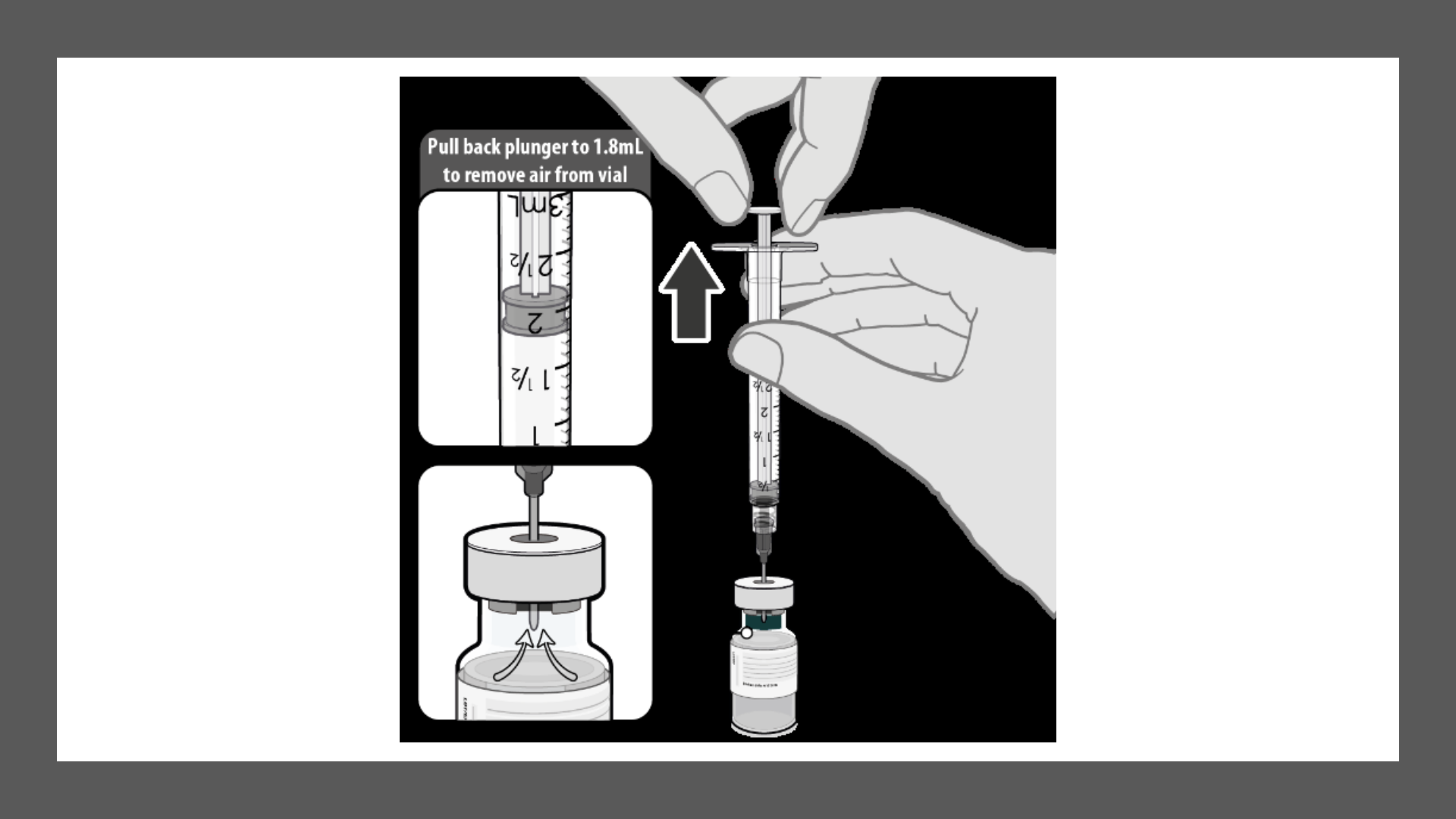 Egalizați presiunea flaconului înainte de a scoate acul din flacon prin extragerea a 1,8 ml de aer în seringa goală.