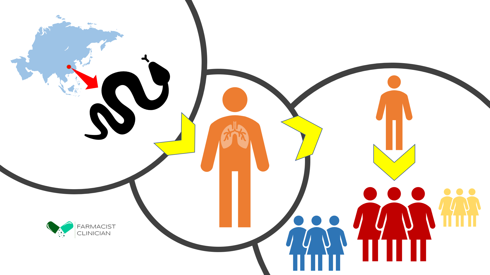 Transmiterea inițială a fost între animale (șerpi, lilieci) și om. Virusul a trecut de la aceste animale la om, apoi infecțiile s-au răspândit prin contact om-om.