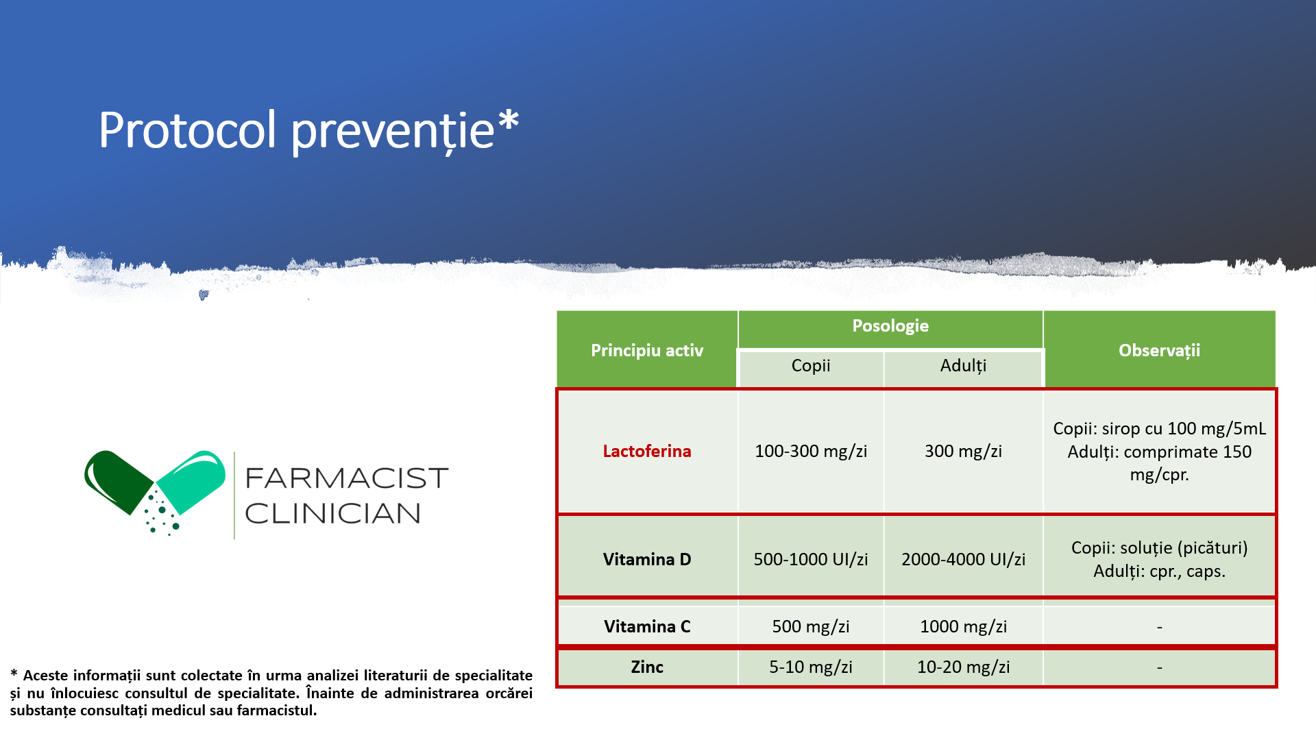 - Informațiile prezentate au caracter pur informativ și NU înlocuiesc consultul de specialitate